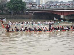 今日は旧暦で5月5日。端午節です。またまた朝から大雨です…。こんな調子で龍舟レースがあるのかどうか非常に不安でしたが、とにかく予定通りに現場へ!私は遅めに出発しましたが、男性陣は場所取りのため朝早くから走り回っていました。天気がよければ大勢の人出が見込まれるので、早めに行っていいポジションを押さえなければ撮影にはならないから。いろんな人に聞いたけど、結局何時からレースが始まるかはわからずじまい。こんなアバウトでいいのでしょうか、中国!?みんな「だいたいお昼を食べてから」って、レースなんだから…。