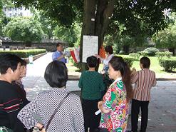 やっと、ようやく青空。待ちに待った快晴、今日は一気に外での撮影を済ませましょう。まずは西湖公園へ。西湖沿いを主人とフラフラ。ここではいろいろとインタビューされました。何気なく公園の人々を観察すると、面白い、面白い。なぜかラテン系ダンスの練習をする中年カップルとか、歌の練習をするおばちゃん集団に遭遇。今日は確か平日なんだけど…。写真は突然歌の練習を始めたおばちゃんたちです。