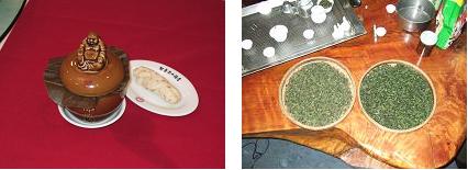 お昼は福州名物の佛跳墻を食べに行きました。これはおいしさのあまり、お坊さんが壁を乗り越えるほど跳び上がるという話から命名された料理。結構なお値段で、このミニサイズでも200元!作るのにとても手間ひまかかるのです。大勢で食べる時は、要予約ですよ。料理は湯気を映像に収めるため、部屋をキンキンに冷やしての撮影でした。なーるほど、テレビ番組の裏側を見たり。他にも、スプーンで料理をおいしそうにすくってみせるシーンとか、手タレの気分がわかりました。