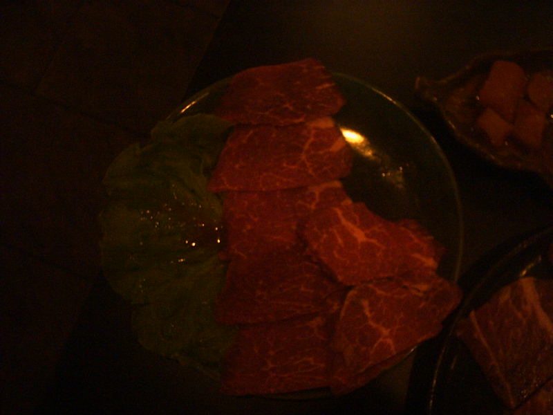 当店には他に、普通のカルビ(50元)、特上カルビ(118元)もご用意しています。その日の気分と胃袋、お財布と相談して、お選びいただけますよ。恐らく当店のお肉、他店に比べて多少お値段が高いとお感じになるかもしれませんが、質には自信を持っています!福州、いえ、福建省では当店が一番だと自負しております!!日本では難なく食べられるものも、中国では手に入りにくいのです。そう考えていただければ、納得して当店自慢のカルビを味わっていただけるでしょう。