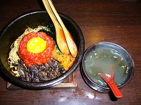 無性にビビンバが食べたくなったおかみ。でも普通のビビンバは普段からよく食べているので、今日はひと味違ったものを食べたい!そこで、今日お店の小姐から「これはどう?」と勧められて食べたのは「鮮牛肉石焼什錦盖交飯(ユッケビビンバ)」です。熱々のビビンバの上には新鮮なユッケと生卵が載っています。精がつきそうですね。これを一気に混ぜ合わせ食べます。ピリッと辛く、おこげもおいしい!箸休めにワカメスープも付いていますよ。お値段は48元(日本円で720円)です。