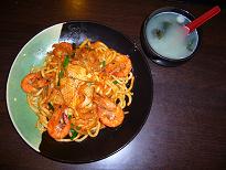 海鮮泡菜炒烏冬面(海鮮キムチ焼きうどん)は、たっぷりの海老やイカと自家製キムチがマッチしたお勧めのうどんです。一口食べるごとに辛さはヒートアップ!でも、それがまた癖になるんですよね。ワカメスープでお口直しして、最後まで食べつくしてください。お値段20元(日本円300円)です。